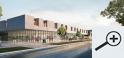 Vor dem Hangar entsteht ein großer Neubau mit verschiedenen Märkten, Geschäften sowie einer Bankfiliale.
